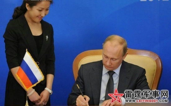 普京出席会议在文件上签字,中国美女露出甜美笑容。