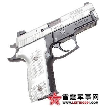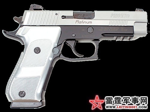 白金型手枪的握把护板采用铝合金打造,外表呈现白色。再加之银色不锈钢套筒与黑色铝合金套筒座,全枪呈现出非同一般的典雅色彩。白金型系列手枪包括西格P220 白金型与西格P229白金型手枪。这两款手枪在西格P系列手枪中外形最高雅。西格P220白金型采用0.45 英寸ACP口径,西格P229白金型为 9mm口径。